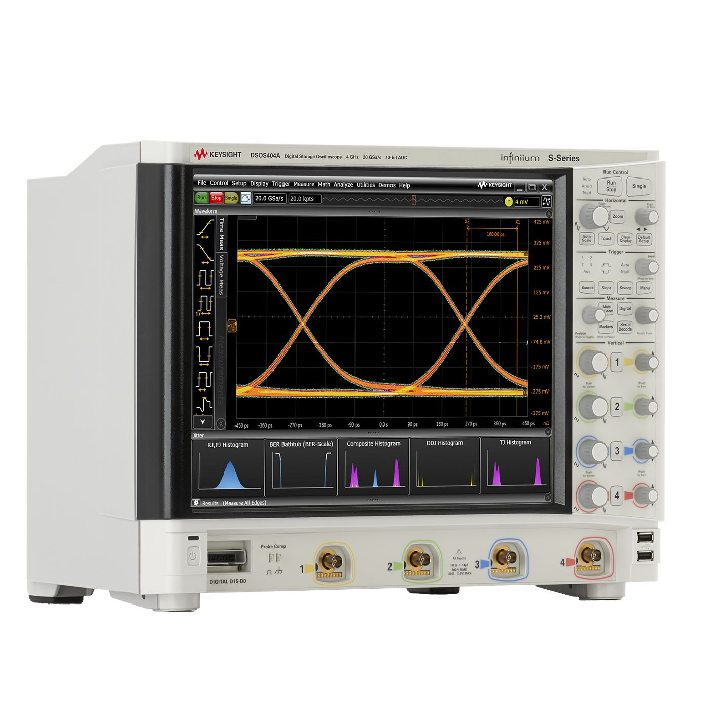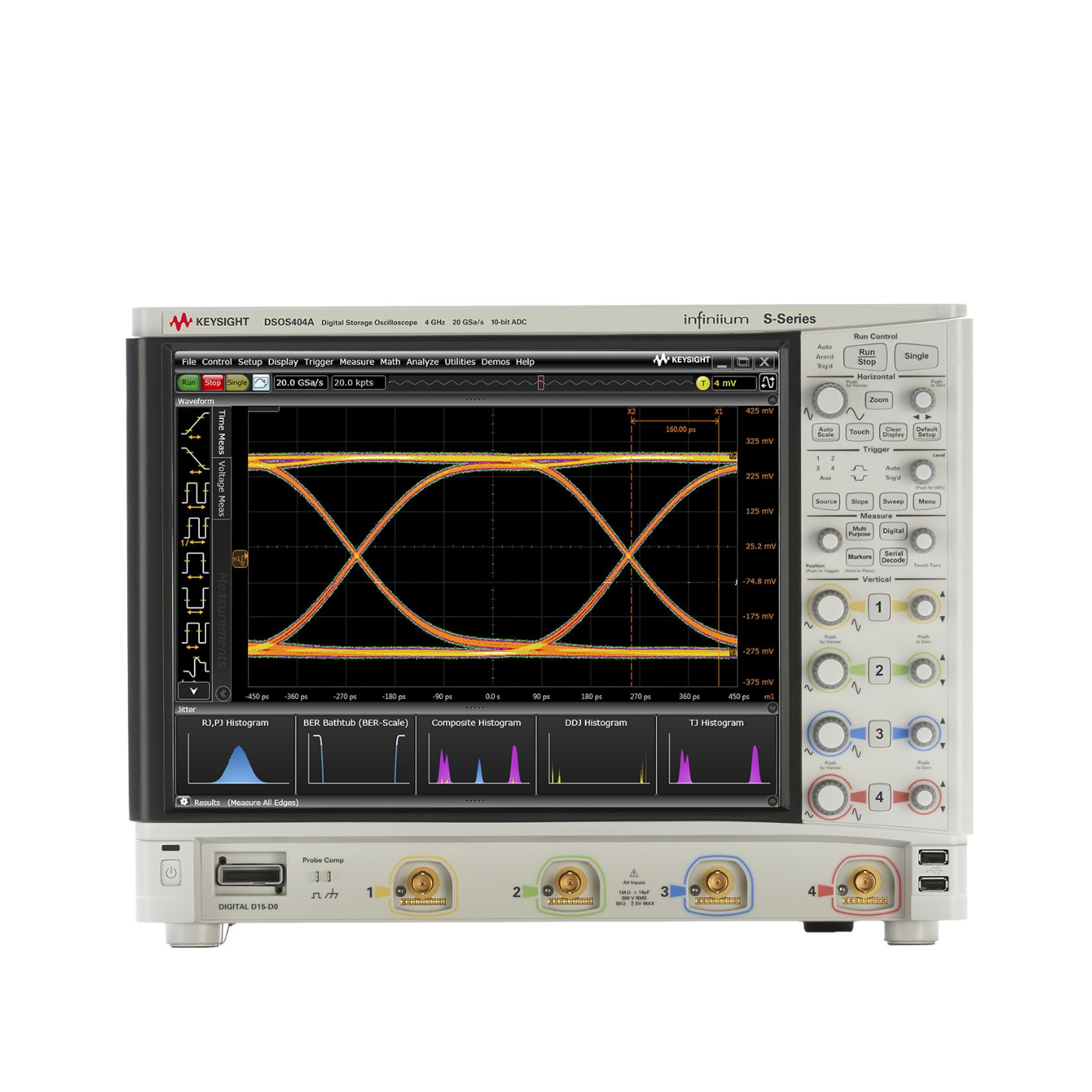capture a longer signal trace with 20 GSa/s maximum sample rate and 100 Mpts/channel of standard memory