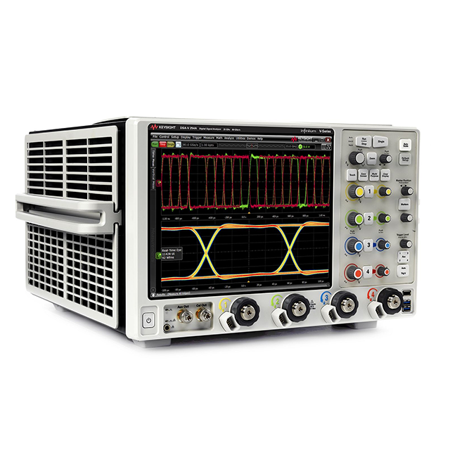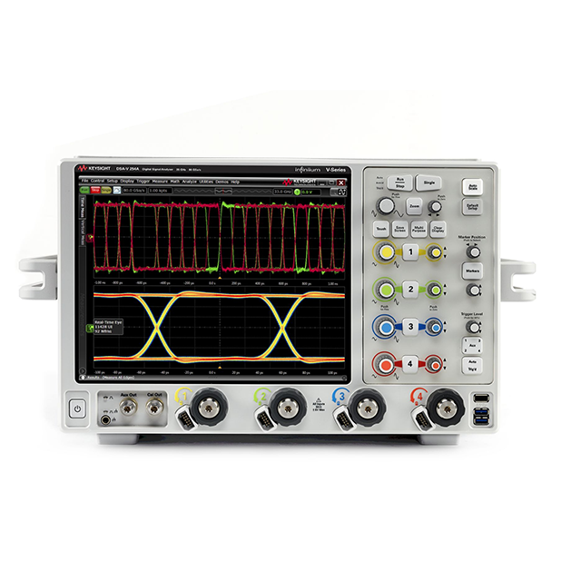 The Keysight DSAV254A is a 4 channel 25 GHz analog bandwidth high end oscilloscope capable of capturing signal traces with up to 80 GSa/s sample rate.