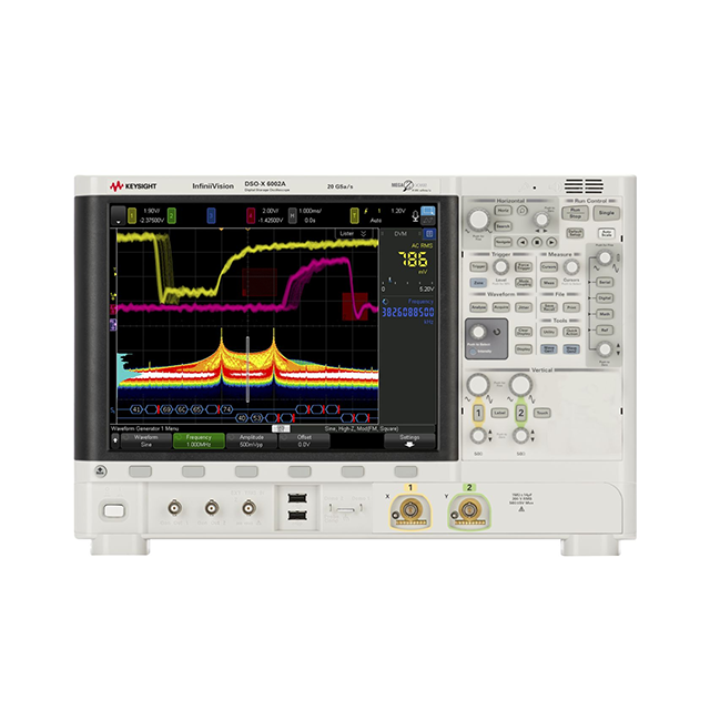 With up to 6 GHz bandwidth, 20 GS/s sampling rate, 4 MTPS (1/2 channels) memory depth, and up to 450,000 waveforms/s refresh rate, the oscilloscope combines high performance, advanced analytics, and intuitive touch control on a 12.1-inch Full HD multi-touch display.