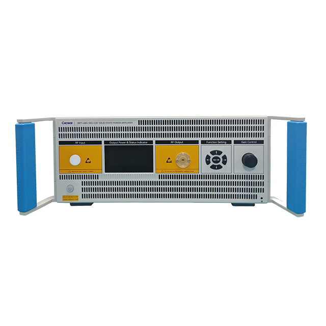 The 3871 series solid state power amplifier are composed of multiple amplifiers operating in different frequency bands. Among them, the 2GHz to 18GHz solid-state power amplifier and the 18GHz to 40GHz solid-state power amplifier are the latest ultra-wideband high-performance integrated devices launched by Ceyear Technology Co., Ltd. Developed using broadband high-power signal amplification and synthesis technology, this series of universal high-performance amplifiers can be used in the research and development, manufacturing, and maintenance support of communication equipment, and can also be widely applied in EMC testing, non-linear testing of high-power components, and many other fields. They are indispensable important instruments in broadband high-power test systems.