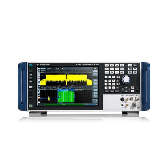 The R&S®FSV3000 signal and spectrum analyzer performs measurements at the push of a button, uses event based actions for capture and makes script programming simple with a SCPI recorder – for quick setups of complex measurements. Fast measurement speeds for high throughput in production applications are another major advantage.