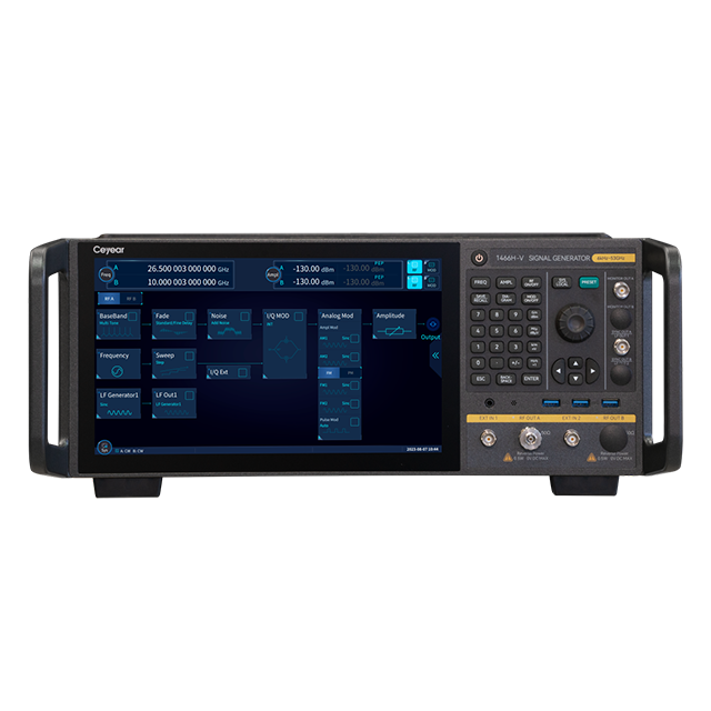 Ceyear 1466-V vector signal generator is created to meet the varied test requirements with top performance and functionality, especially in higher frequencies, wider bandwidths, higher signal spectral purity, higher output power, better EVM and high-precision synchronized multichannel applications. Also rich built-in functions such as analog modulation, digital modulation, fading simulation, and AWGN could bring more convenience to daily testing. Through integration with multi-scenario signal simulation software, complex style signals can be generated for general-purpose tests in different scenarios for wireless communication, radar and navigation. Friendly designed human-computer interaction, including graphics guided operation, web browser based remote control, power meter automatic connection and identification, SCPI command recording, as well as interface user customization could speed up the test operation. The Ceyear 1466-V vector signal generator is an ideal choice for high standard testing in components, modules, machines and systems.